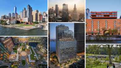 With today’s ribbon cutting, 11 residential buildings have opened in Greenpoint Landing. The first building, One Blue Slip, opened in August 2018, followed by Two Blue Slip in 2020. Others include The Bellslip and Eagle & West, the latter of which was designed by OMA.