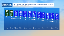 Winds will be brisk on Thursday, too. Gusts will reach up to 30 miles per hour in the afternoon. Expect the wind chill to be about 10 degrees below the actual air temperature.
