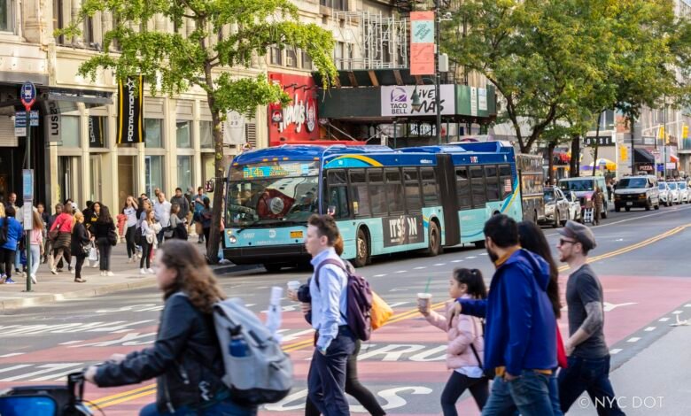 Nearly seven years after the 14th Street busway launched, New York City is moving forward with more improvements to the Manhattan corridor. The city’s Department of Transportation on Monday announced public outreach will kick off this month on the redesign of 14th Street, which will include upgraded pedestrian space, parks, and plazas, landscaping and greenery, and safety enhancements, all intended to complement the successful busway. DOT is currently conducting a $3 million, two-year study, first introduced by former Mayor Eric Adams last summer, to develop ways to enhance the experience of pedestrians and commuters on 14th Street.
