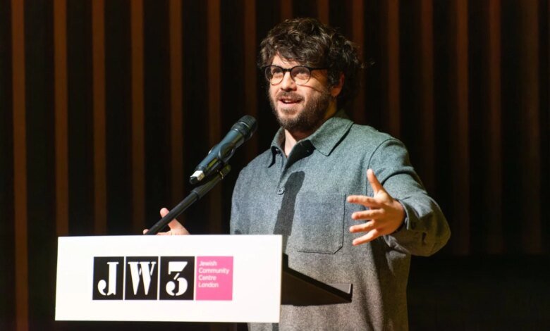 Initially the piece was about decompartmentalising those stories, but when 7 October happened, we went into rehearsals and made something in response to that. It was difficult, because I was doing a lot of personal work, which is [touched on] in the piece, with regards to shame and reckoning with my connection to Israel as a safe space. I had to think: what do I want this story to do in the world? What’s going on is obviously horrific and somehow my story is tied up in it. So I went back to it, really tried to take agency of the story and consider what this dissonance is as a British Jew. The show has changed hugely, but the one thing it’s managed to hold onto is this idea that the binary doesn’t work. The myriad truths that we’re holding have changed. [One of] the only things that has stayed the same is my grandfather’s story.