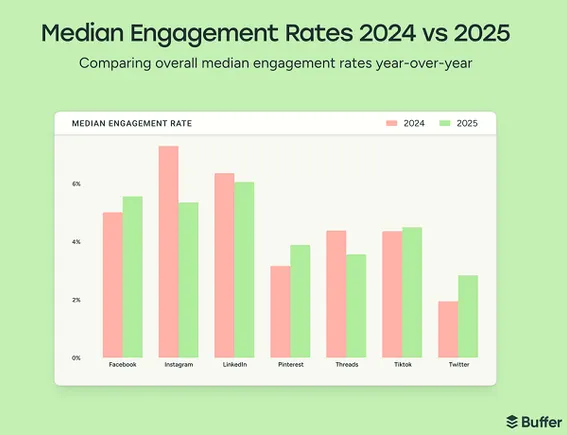 Social media management platform Buffer published a report last week that examined social media engagement rates across Buffer’s 191,000+ monthly users, incorporating tens of millions of posts sent via Buffer’s social media posting tool throughout 2025.