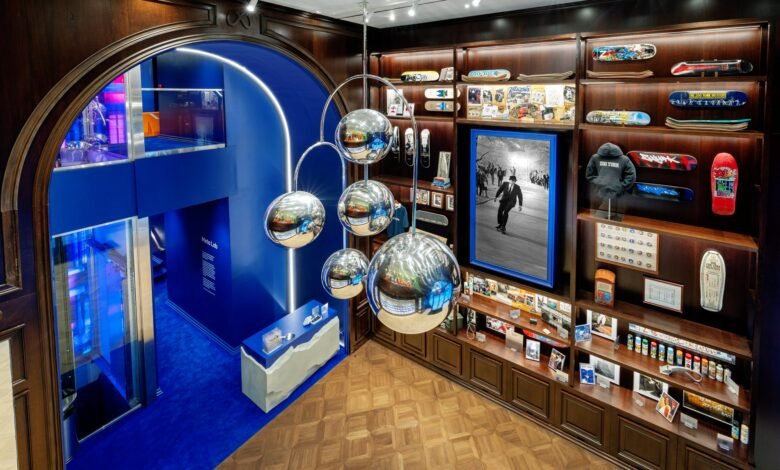 Meta hosted a pop-up at 697 Fifth Avenue last November, previewing the flagship’s blue exterior and interior design. The space featured a skate-inspired aesthetic, including black-and-white Bill Eppridge photography, custom cases, overboxes, and lens cloths that pay tribute to skate culture, according to Time Out.