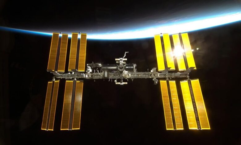 The International Space Station shown in front of Earth