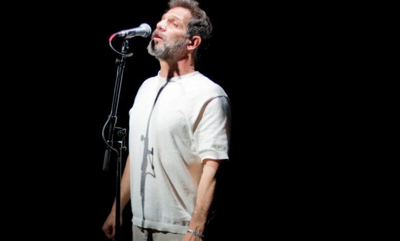 As he opens up to the audience (“yes, I am an Arab… from Israel… a Palestinian-Israeli”), Yousef is interrupted by the harsh miked-up voice of his father (also voiced by Yousef, sound design by Thomas Moked Blum). “You are not a Palestinian-Israeli,” booms the disembodied voice, “you are a Palestinian with an Israeli passport.” His father then instructs him to tell the audience about “the Arabs of 48”, indicating the Nakba, or “the Palestinian Catastrophe in 1948. When the Brits gave Palestine to the Jews and … we lost Palestine”. Yousef does a swift but extensive round-up of different “kinds of Palestinians”, living everywhere from east Jerusalem to refugee camps in Jordan to Berlin to Canada and beyond. “Like my father, Sliman, who escaped Israel,” he explains. “Not because Zionists were hunting him, no. Because of tax fraud. And he owes a lot of money to the black market.” This undercurrent of humour is what fuels Between the River and the Sea, like a sweetener to help the hard-hitting moments go down.